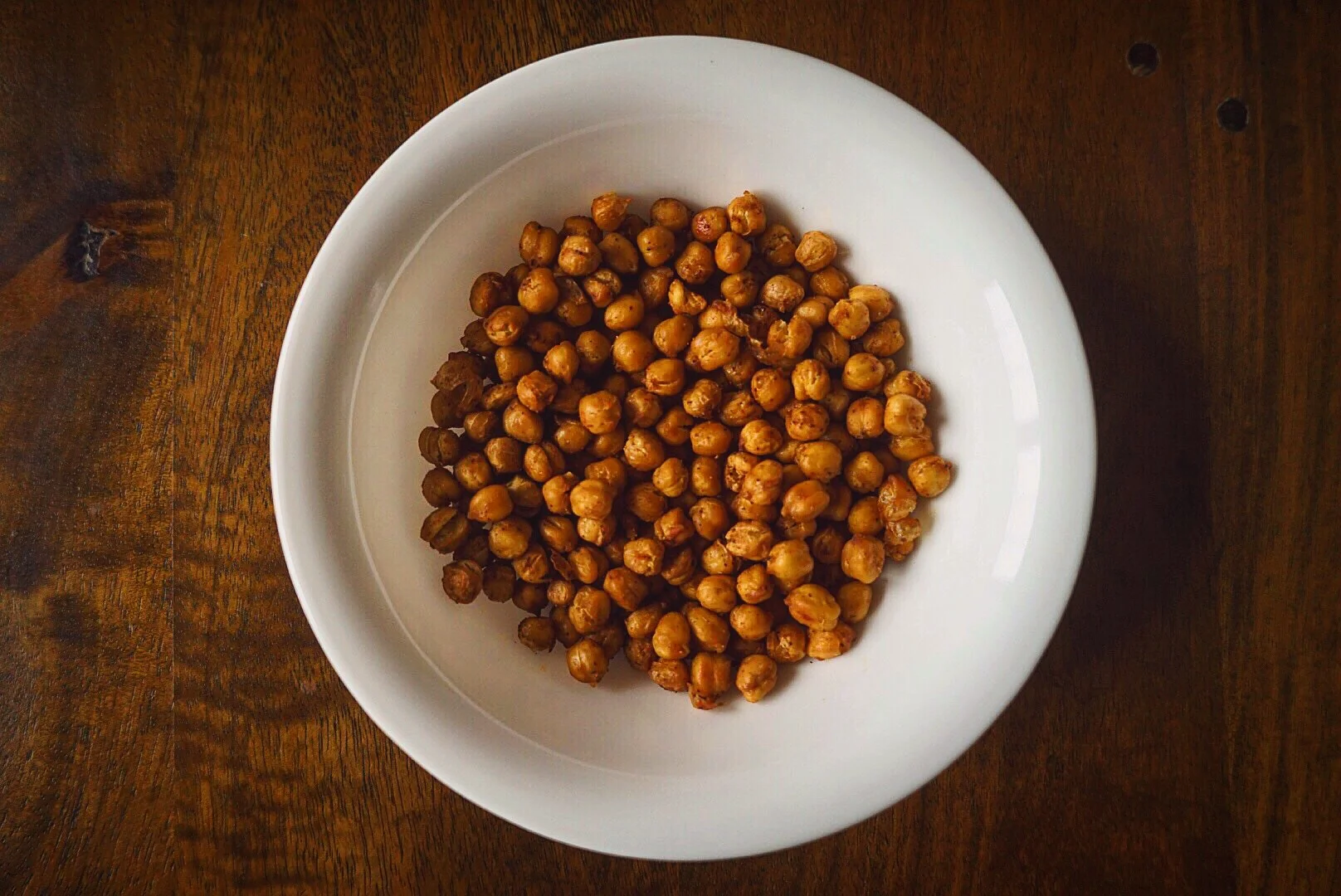 I am currently obsessed with roasted chickpeas. I toss them in olive oil, salt, garlic and a heavy hand of chili seasoning then roast for an hour at 350. I only make one can at a time because I have no portion control.