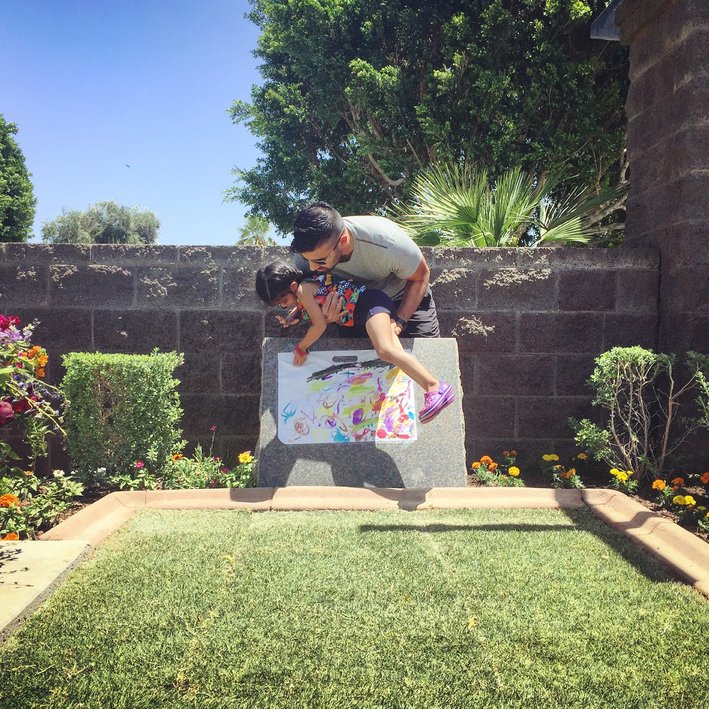 Zoya amazes us with her compassion and understanding. She is 4 years old but we have been honest with her about the illness and death. While my mother was alive, Zoya would tell her stories and speak to her with a surprising gentleness - even when my mother was unable to speak back. She would help with her shoes and hold her hand. She'd say "Nani you must stay hydrated and take your meds" then report a status back to my father. She always wanted to help. She understands that Nani is no longer physically with us but continues to show her love. She waters the flowers at the grave and asks Nani, buried underneath, how much water is okay. She wears yellow to school because "it is Nani's favorite color". She looks up at the sky and talks to Nani "somewhere in the universe". She paints pictures for Nani. She tells my father it will be okay. I hope her heart continues to grow.
